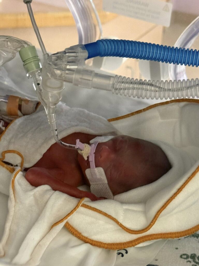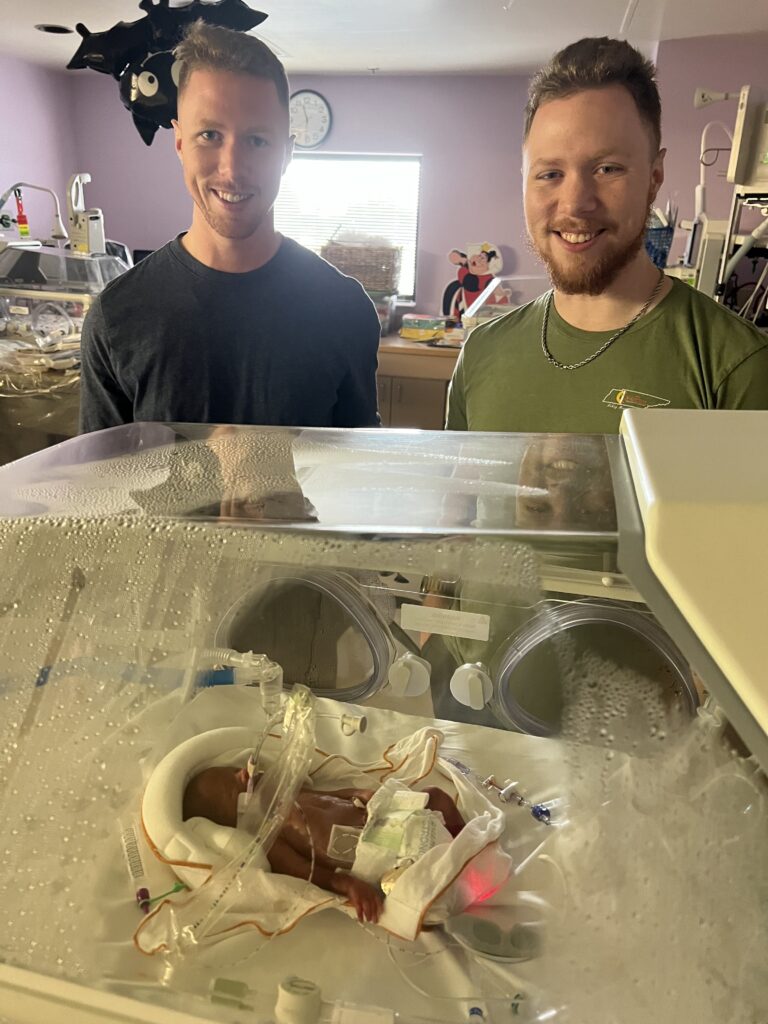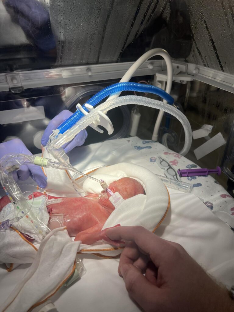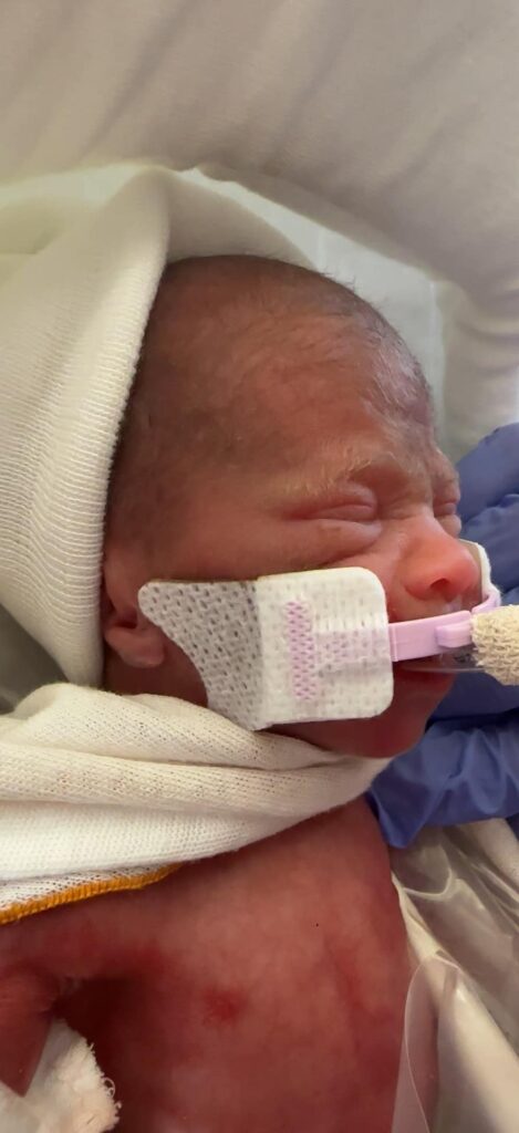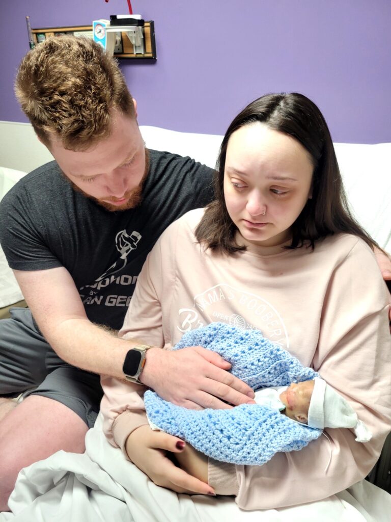 Harrison Noel James was born November 9, 2024 at 23 weeks and 1 day. After being transferred to the NICU at a different hospital, he was in need of much care and intervention to survive. Shania and Blake were told hours after birth that he was doing great, but still had a very long road to recovery and things could take a turn for the worst at any moment. He was also on a ventilator as his lungs were not fully developed. While Shania was recovering, Blake was able to spend time with Harrison at the NICU.
