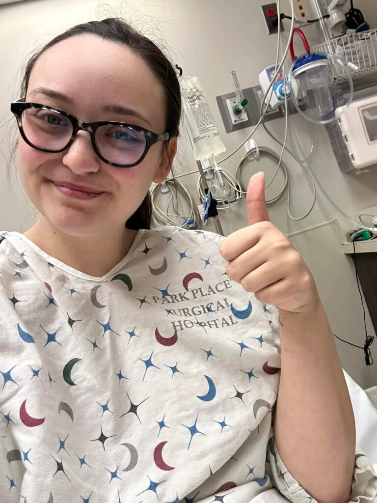 In May 2023, Shania started having severe pelvic pain once again, and brought this up with Dr. Storment the same month at a scheduled appointment to start the IVF cycle. During the baseline ultrasound, they discovered Shania had developed new ovarian cysts, larger than before. They scheduled another surgery for late-June 2023, but due to the rapid severity of the pain, the surgery was moved up to mid-June 2023. In this surgery, they had to remove half of her right ovary, two ovarian cysts, and were able to remove some more of the endometriosis. After the surgery, Shania and Blake were informed that their best possible chance of pregnancy would be to go through an egg donor, in addition to the IVF process. Her sister, Brittany, offered to donate her own eggs to Shania and Blake.